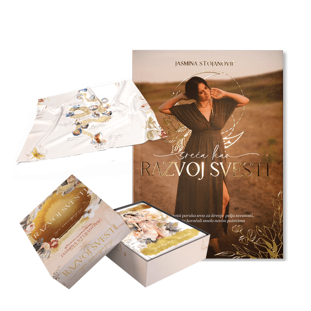 Ovaj paket sadrži knjigu “Sreća kao razvoj svesti” , igru samospoznaje pod nazivom “Razvoj svesti” kao i maramu “Igra svesti”.